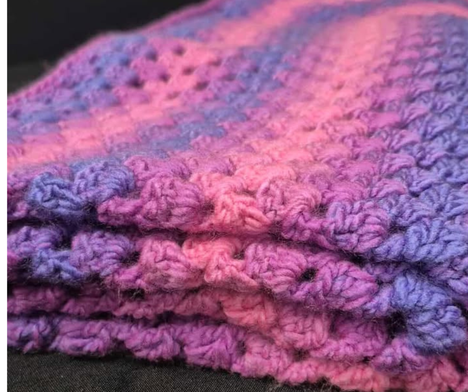 You’ll learn to chain, single crochet, double crochet, and slip stitch. These stitches will come together to begin creating a beautiful blanket.